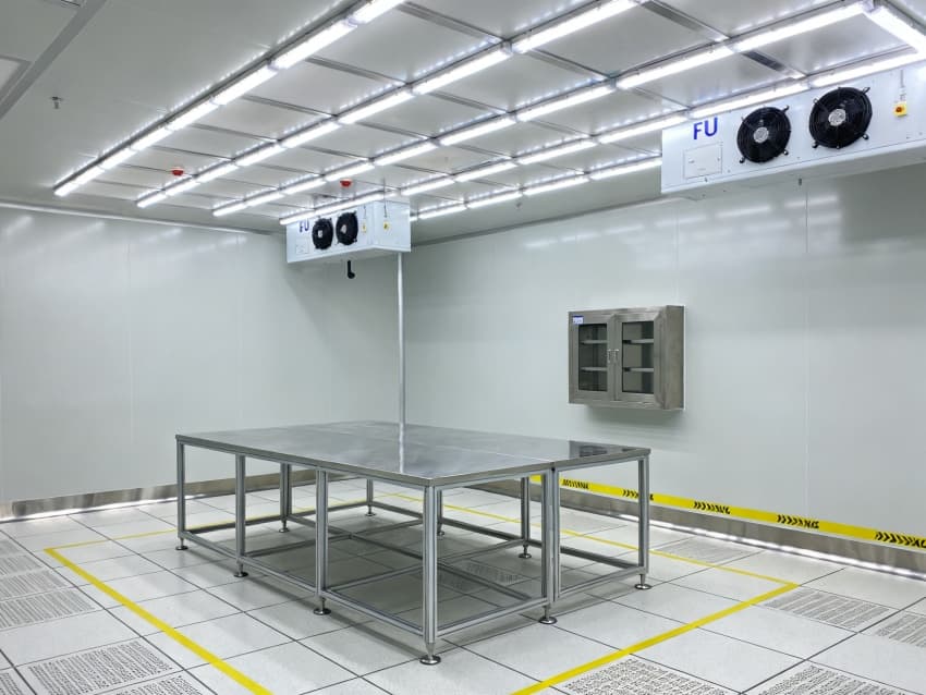 潔凈度需達(dá)到千級(jí)標(biāo)準(zhǔn),采用“上送側(cè)排”的氣流組織形式,頂部安裝FFU風(fēng)機(jī)過濾單元,地面鋪設(shè)防靜電PVC卷材,墻面使用密封彩鋼板,最大限度減少靜電對(duì)精密元件的干擾。?