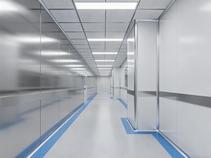 該電子廠凈化工程含廠房外立面與內部潔凈車間兩大核心部分。外立面采用銀灰色氟碳涂層鋼板搭配雙層中空鋼化玻璃,既保障抗腐蝕、抗紫外線性能,又通過通透設計提升室內采光;同時預留設備檢修口與新風系統進風口,兼顧外觀與實用。?